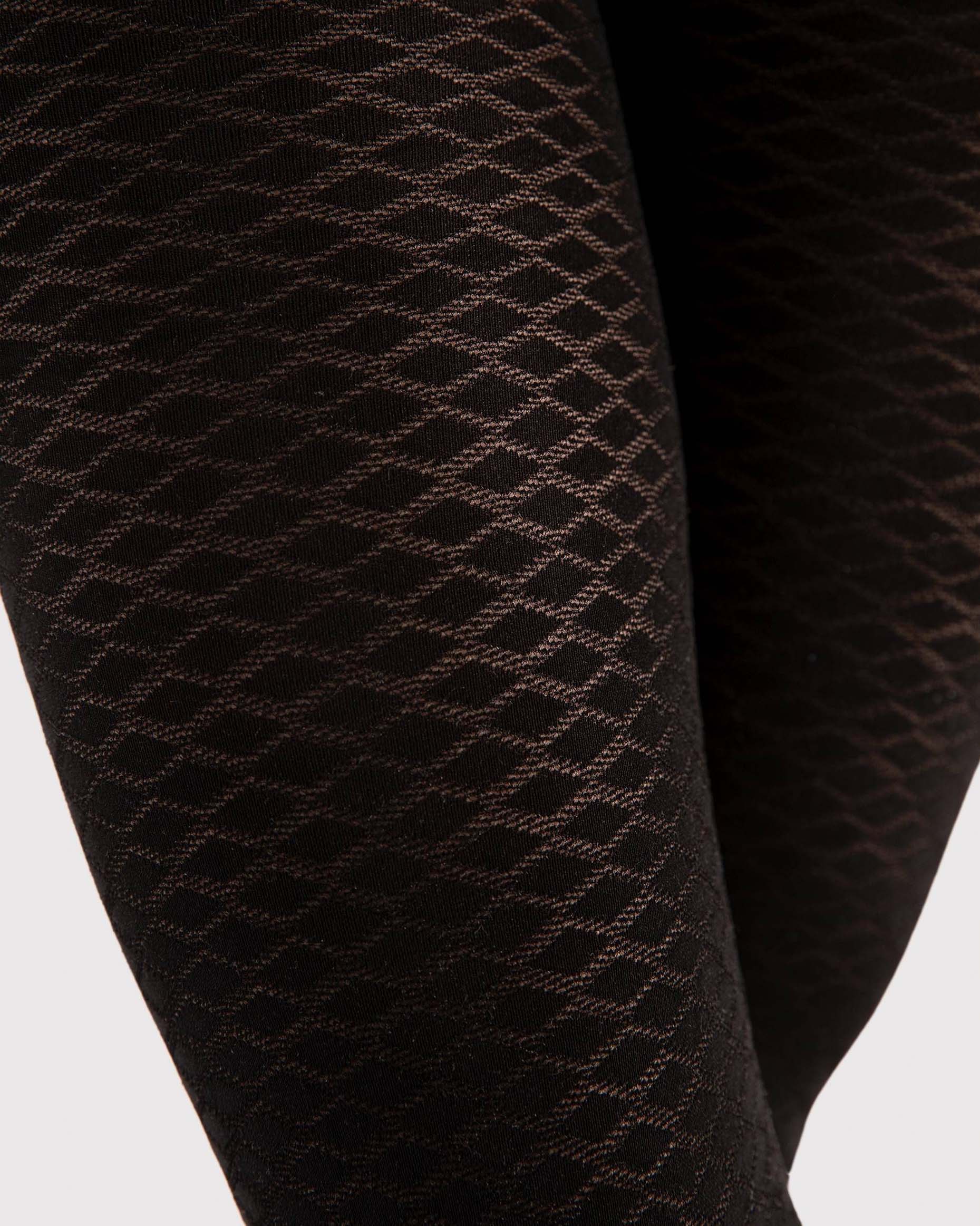 Shiny opaque fashion tights with a subtle diamond pattern.
