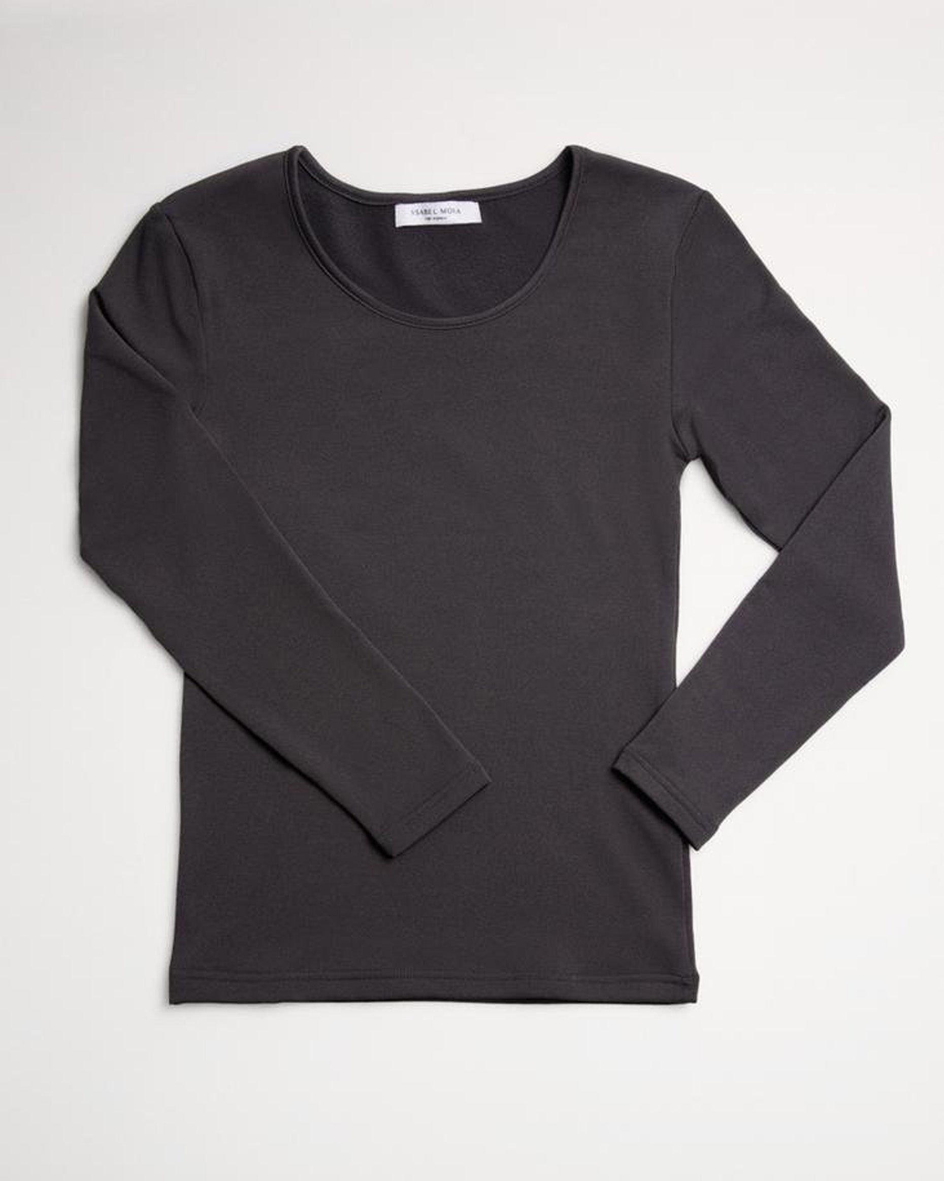 Super warm and cozy fleece lined vest top with long sleeves and crew neck.